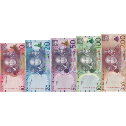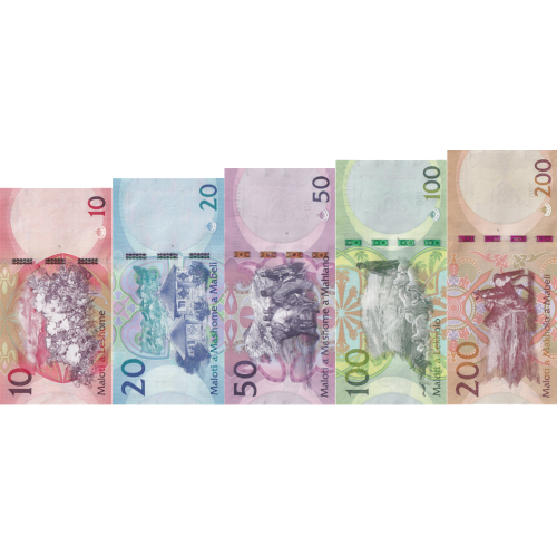 (545) ** PN21c,22c,23c,24d,25d Lesotho 10,20,50,100 & 200 Maloti Year 2021 (5 Notes)