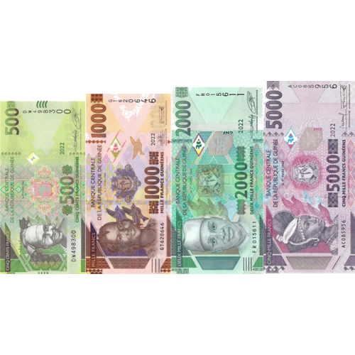 (325) ** PNew (PN52b,48d,48Ab,49d) Guinea - 500,1000,2000,5000 Francs Year 2022