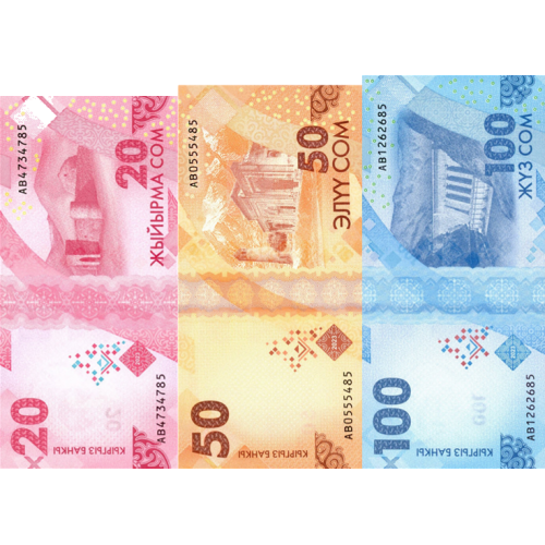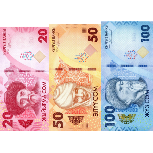 (322) ** PNew (PN34,PN35,PN36) Kyrgyzstan - 20,50,100 Som Year 2023 (3 Notes)