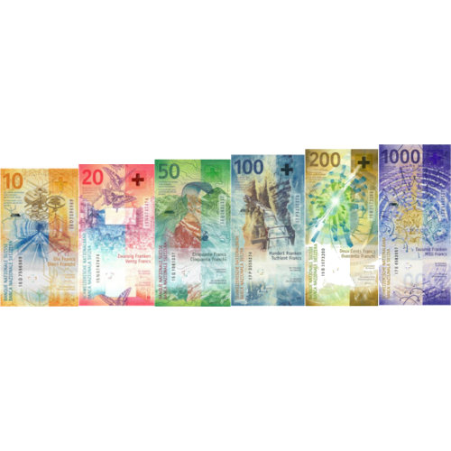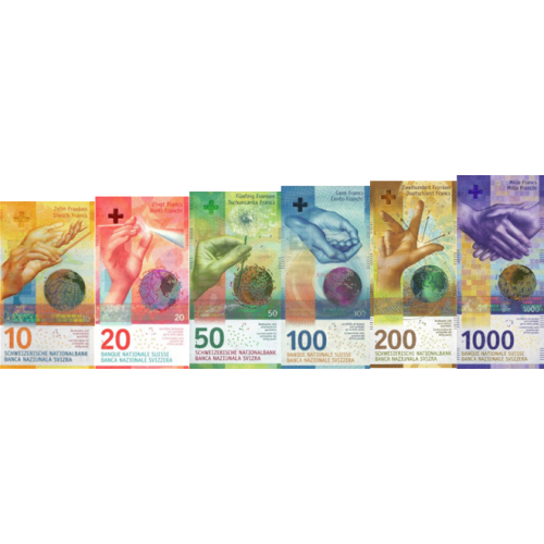 (170) ** PNew (P75-P79) Switzerland - 10,20,50,100,200,1000 Franken (6 Notes)