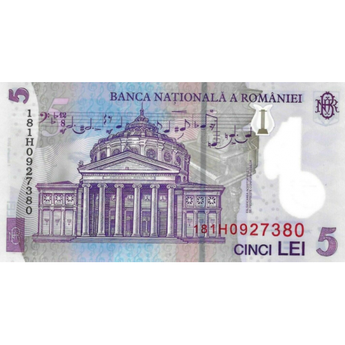 (492) Romania P118 - 5 Lei Year 2018 (New Coat of Arms)