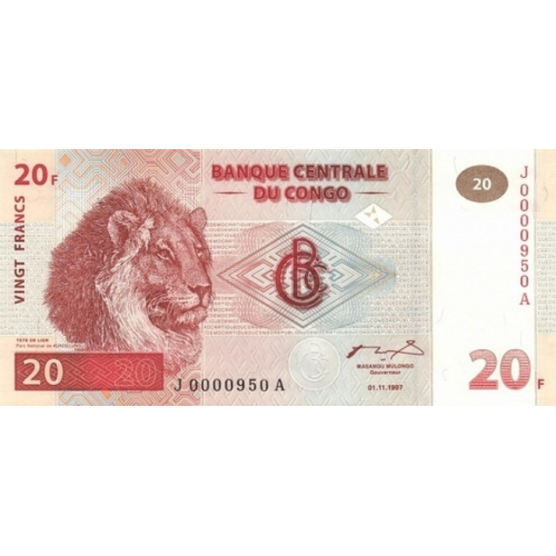 (465) Congo Dem. Rep. P88 - 20 francs Year 1997
