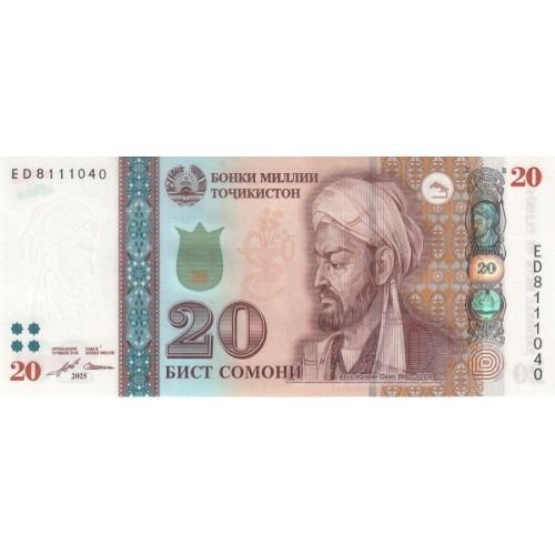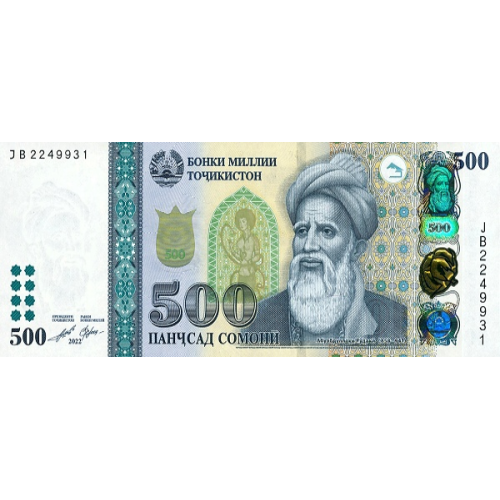 (055) (**PNew) (PN25f,26f,28c,21f,22d) Tajikistan - 20,50,100,200,500 Somoni (2022-2025) (5 Notes)
